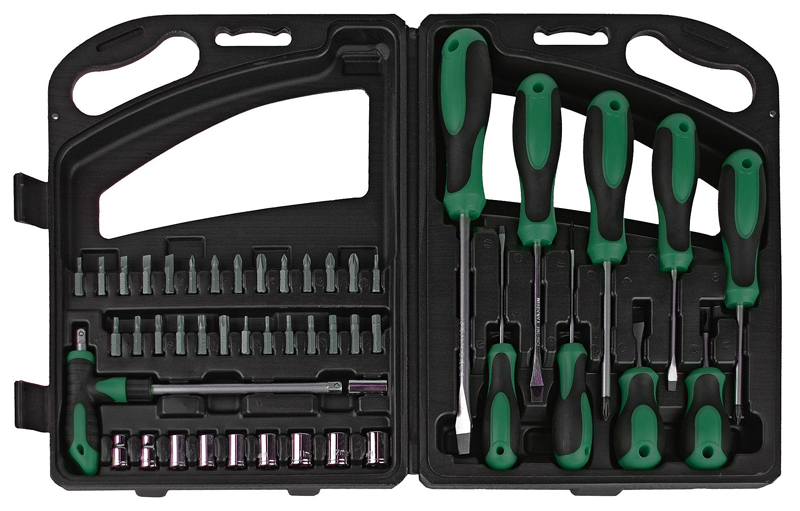 Een complete set van Duitse kwaliteit! Met deze koffer vol met schroevendraaiers, bitten en doppen, zit je bij de meeste klussen in en rondom huis goed