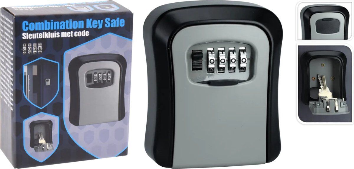 Handige sleutelkluis met 4-cijferige code. Gemakkelijk in te stellen en te installeren.