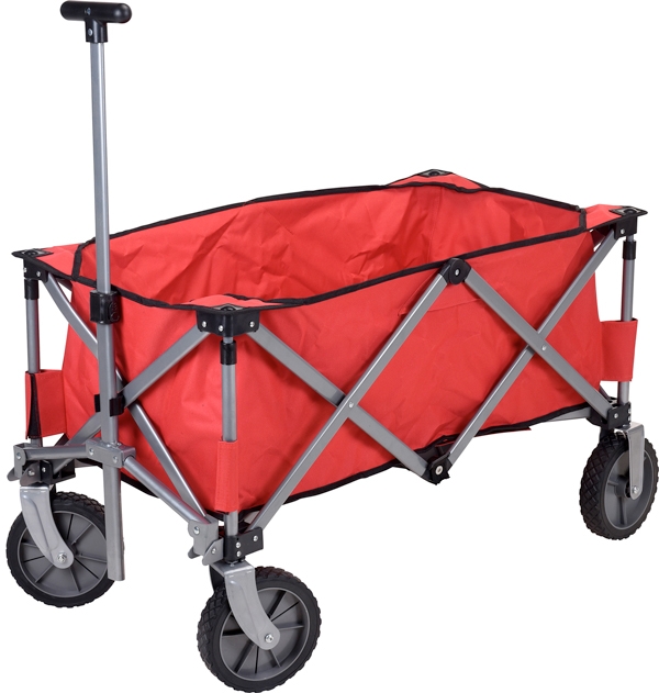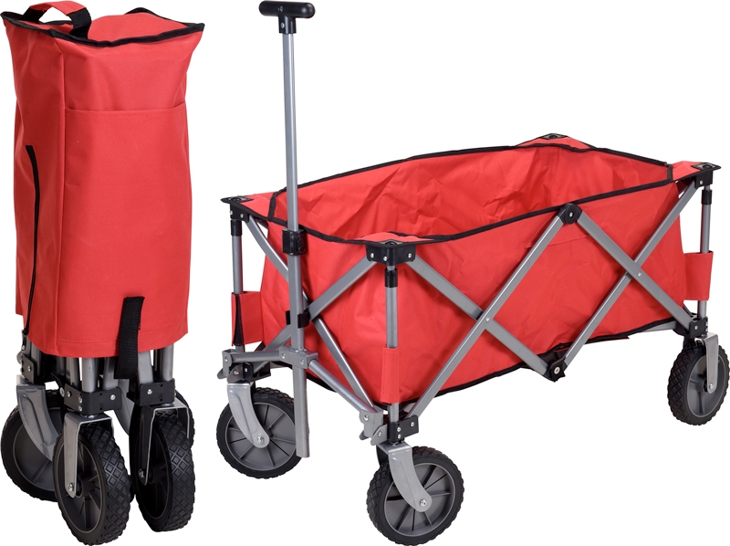 Handig voor een dagje strand, dierentuin of een andere leuk dagje uit. Deze opvouwbare bolderwagen is gemakkelijk mee te nemen in de auto of zelfs op de fiets, doordat hij ingeklapt zeer compact is. Met een maximaal belastbaar gewicht van 70 kilogram kan hij met gemak een paar kleine kinderen en wat bagage dragen.